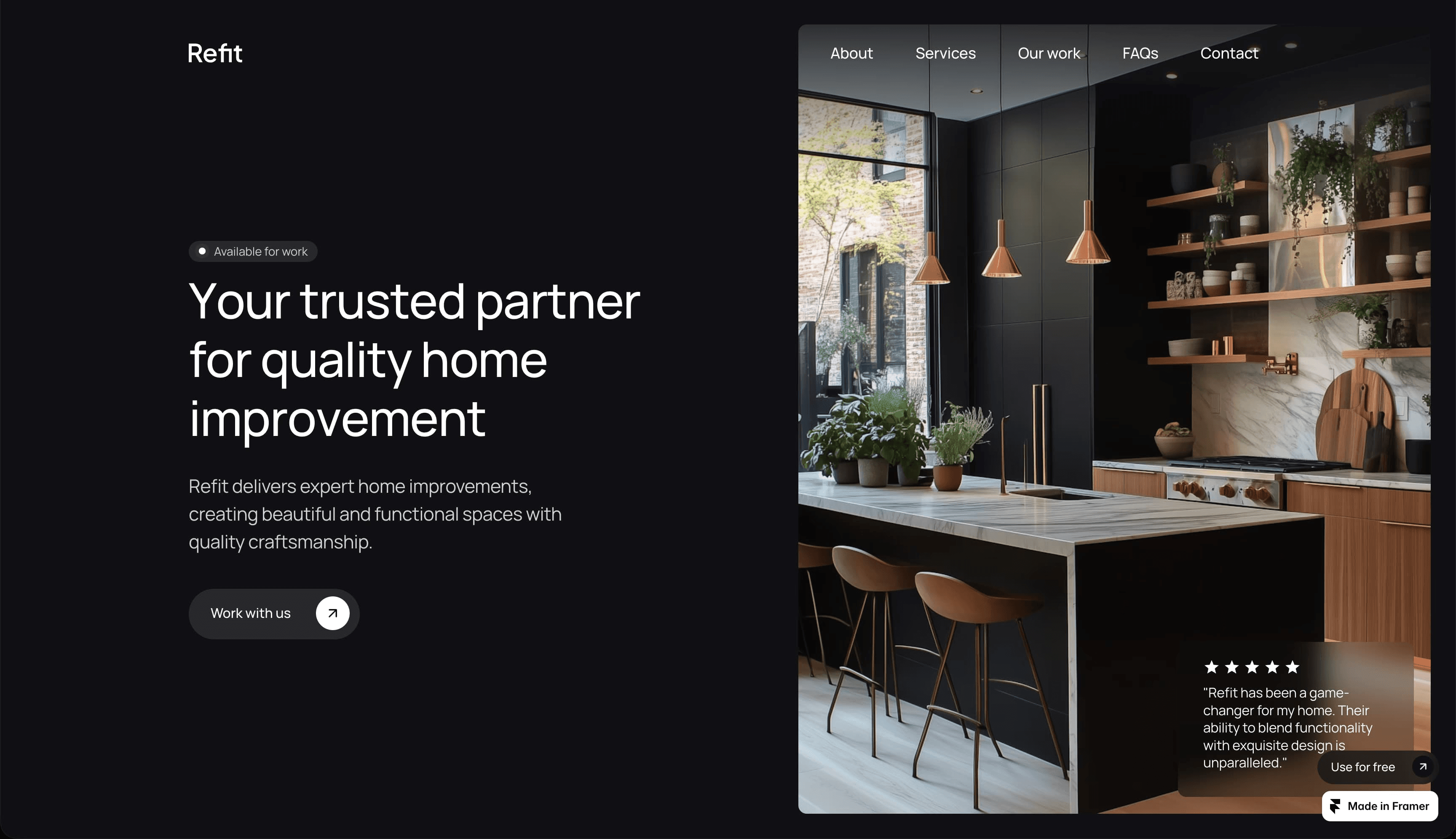 黑白可能是互联网上最流行的配色方案之一,因为极简主义网页设计已经统治了大约十年。在 Framer 的模板 Refit 中,最深的黑色更接近深灰色,超浅的暖灰色有助于创造分隔。通过限制黑白之间的对比并停留在灰色调,这个模板重新诠释了定义优雅的克制,同时更新了经典的配色组合。