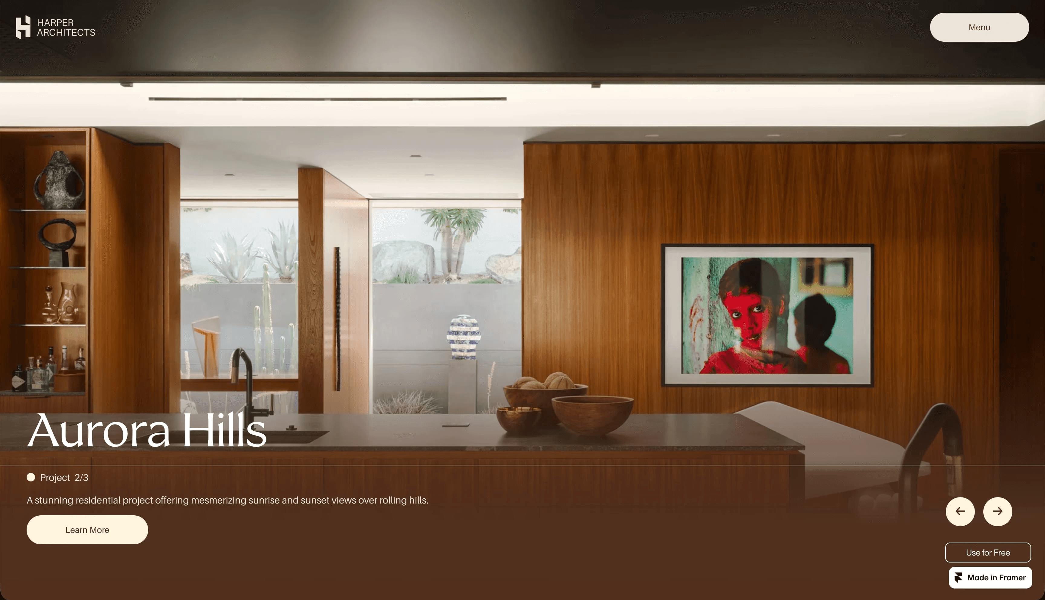 在 Framer 的 Harper 模板中,棕色系构成的单色配色方案既温暖、亲切又大胆。这里的棕色自信地让人联想到优雅的天然材质,如抛光皮革或光亮木材。浓郁的棕色与较浅的色调平衡,呼应了摄影作品中的金色和木质细节。