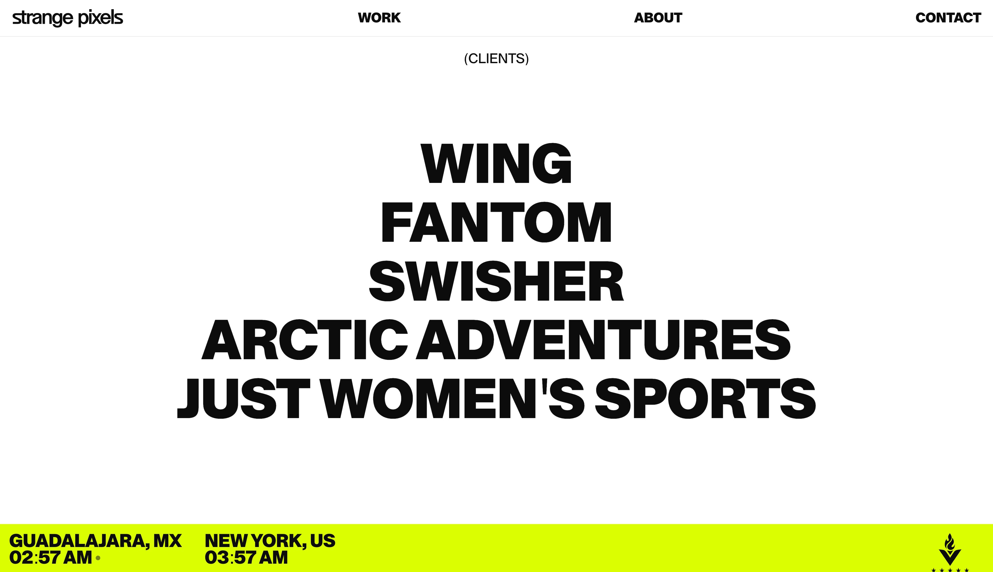 视频贯穿整个 Framer 驱动的网站,但始终保持在精致的黑白核心美学之中。这表明 Strange Pixels 能够在推进客户品牌的同时平衡视觉表现力与克制。