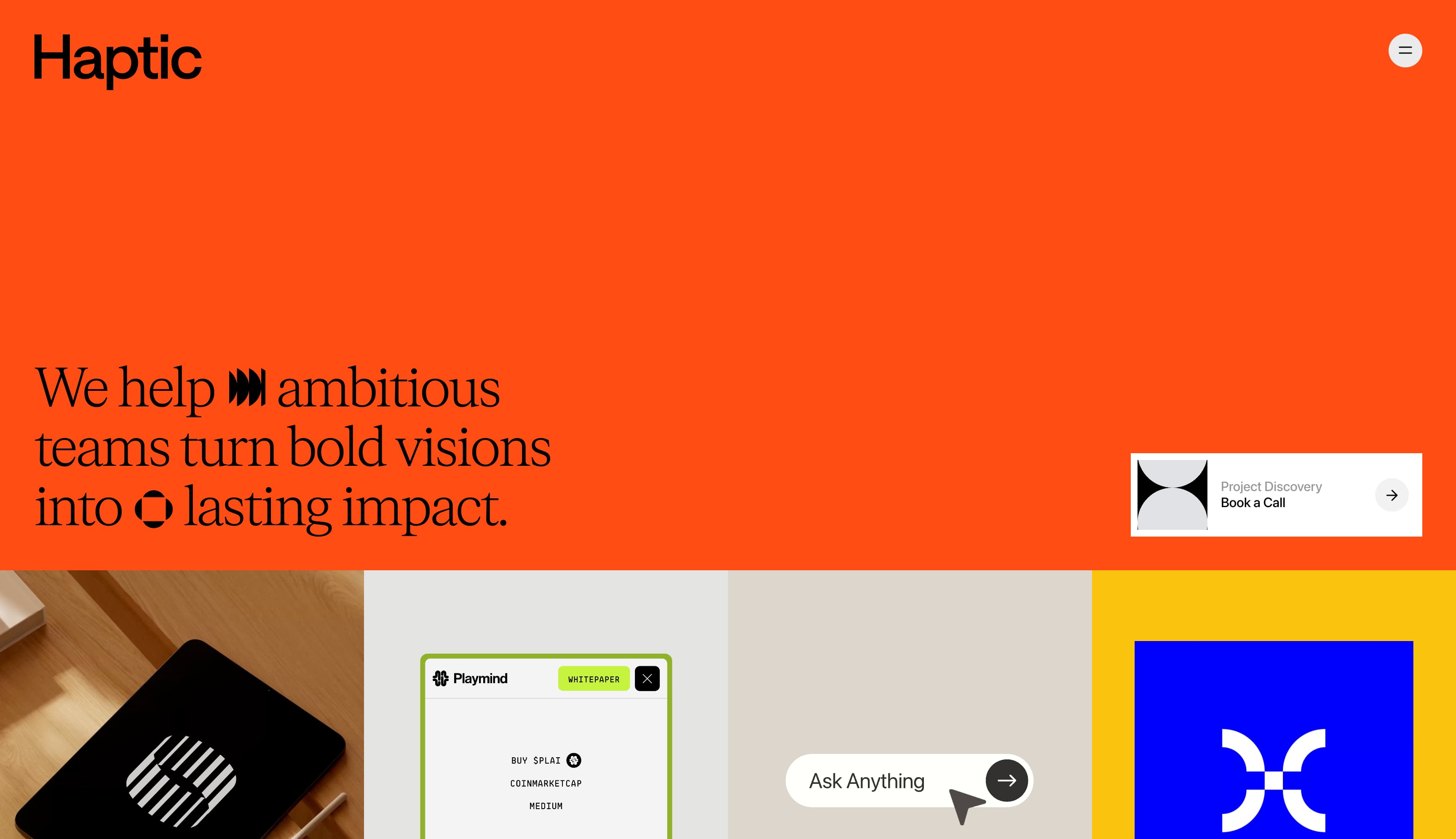 他们为客户评价留出充足空间,使用循环视频模块让网站访客直接听到客户分享与 Haptic 合作的经历,并反思协作的价值。