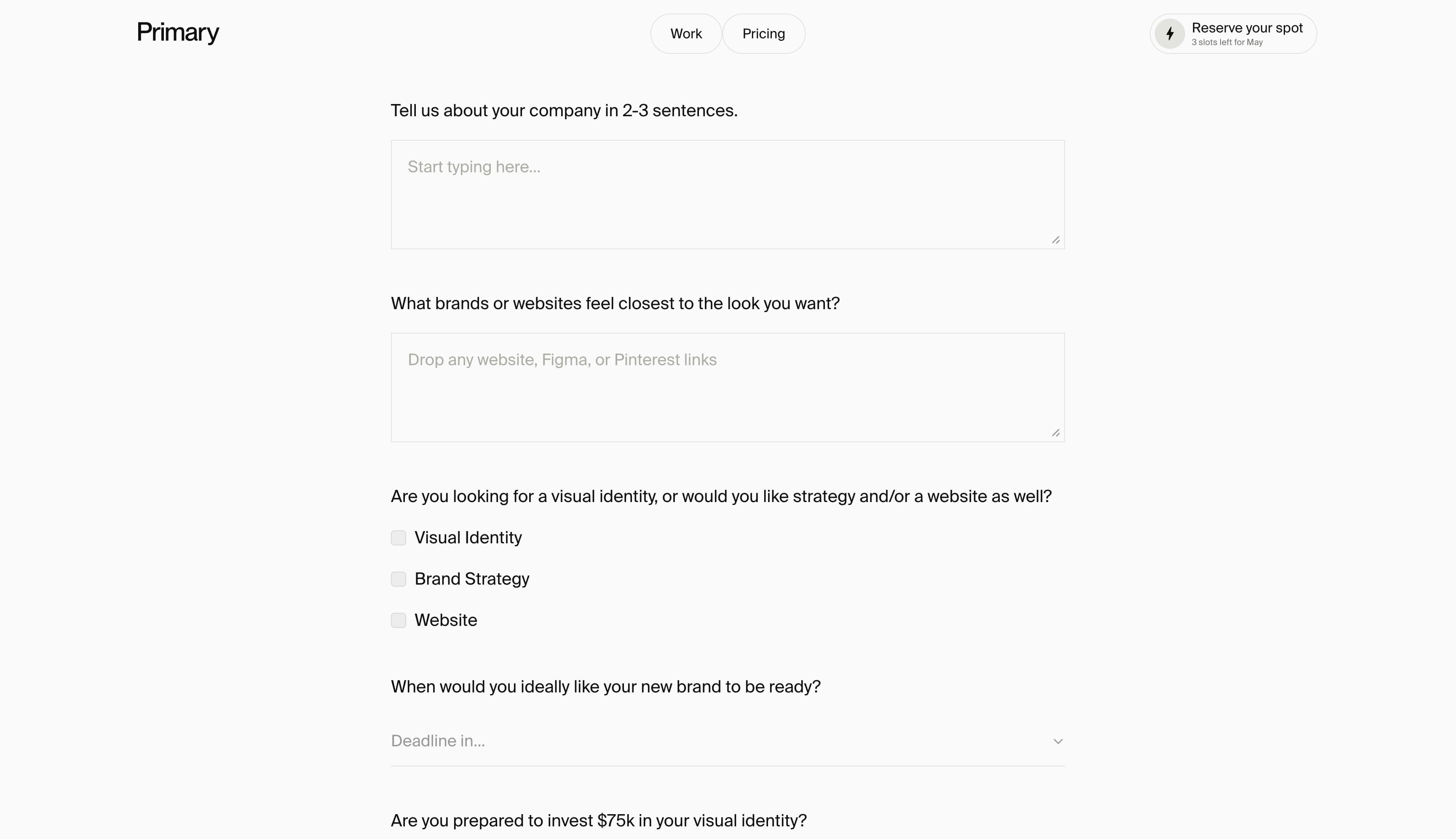 Primary Studio 还使用个性化的需求表单,让新客户从一开始就感到被倾听。这向潜在客户传达了 Primary Studio 已准备好着手定制以品牌为中心的内容。