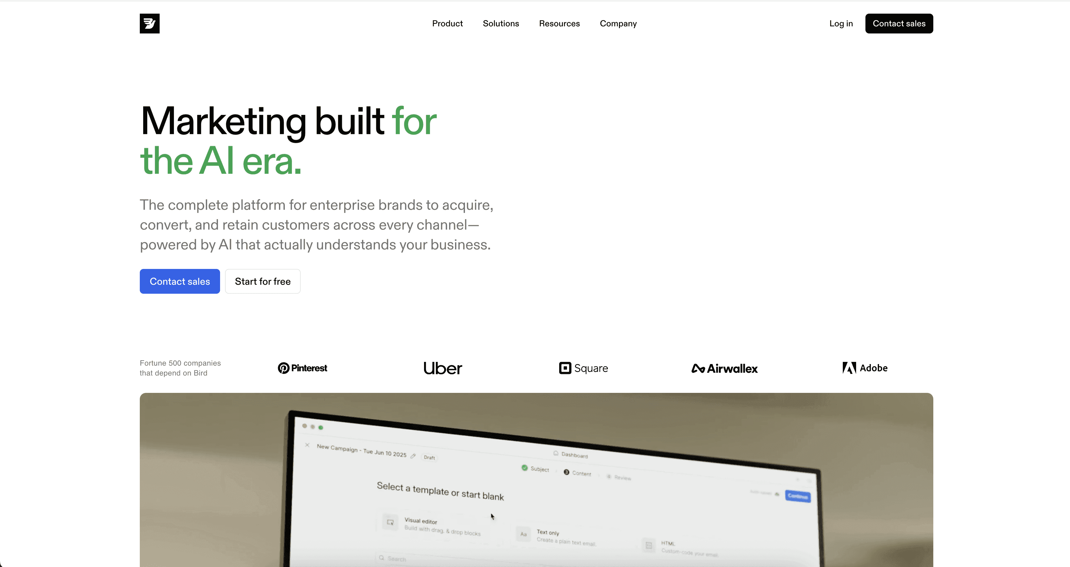 作为一个客户生命周期管理平台,帮助 B2C 品牌自动化其营销活动,Bird的网站设计围绕着一个高质量的循环视频展开,该视频是整个主页的焦点。这个全屏视频展示了产品的实际运行情况,提供了复杂 CRM 功能(如创建自定义工作流和通信滴灌活动)的动态预览,这是静态截图无法实现的。