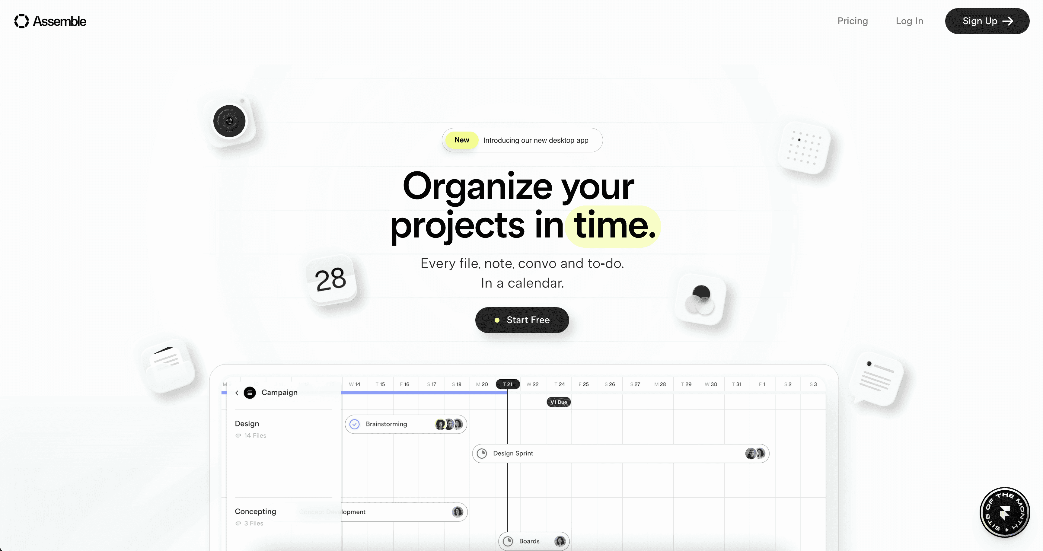Assemble是一款为团队和企业解决复杂项目而设计的产品管理工具。其网站设计以简洁的美学和视差效果为基础,清晰地讲述其产品故事并强化其核心价值主张,即以日历为中心的 UX。在视觉上,品牌和网站的设计旨在唤起一种禅意。