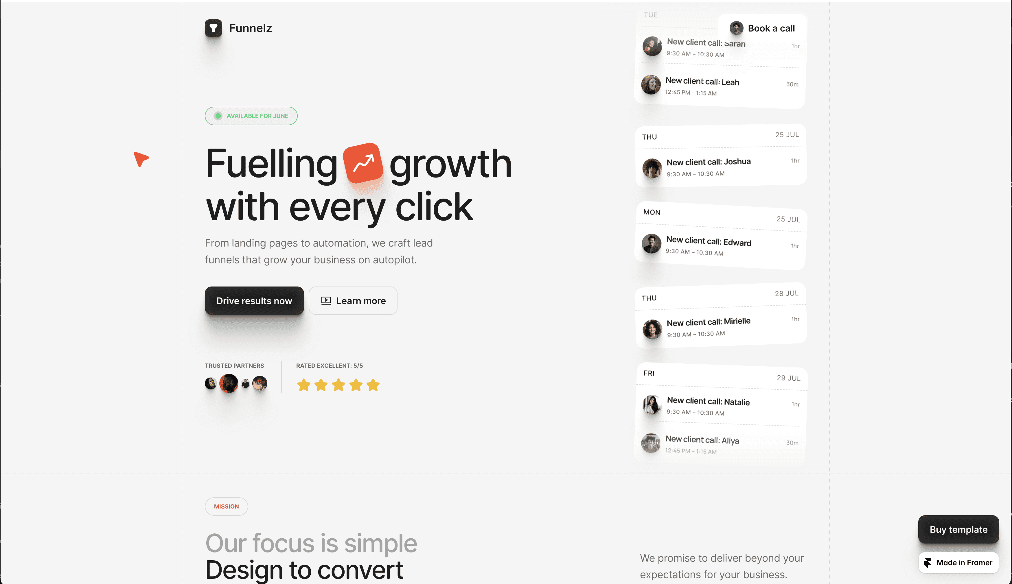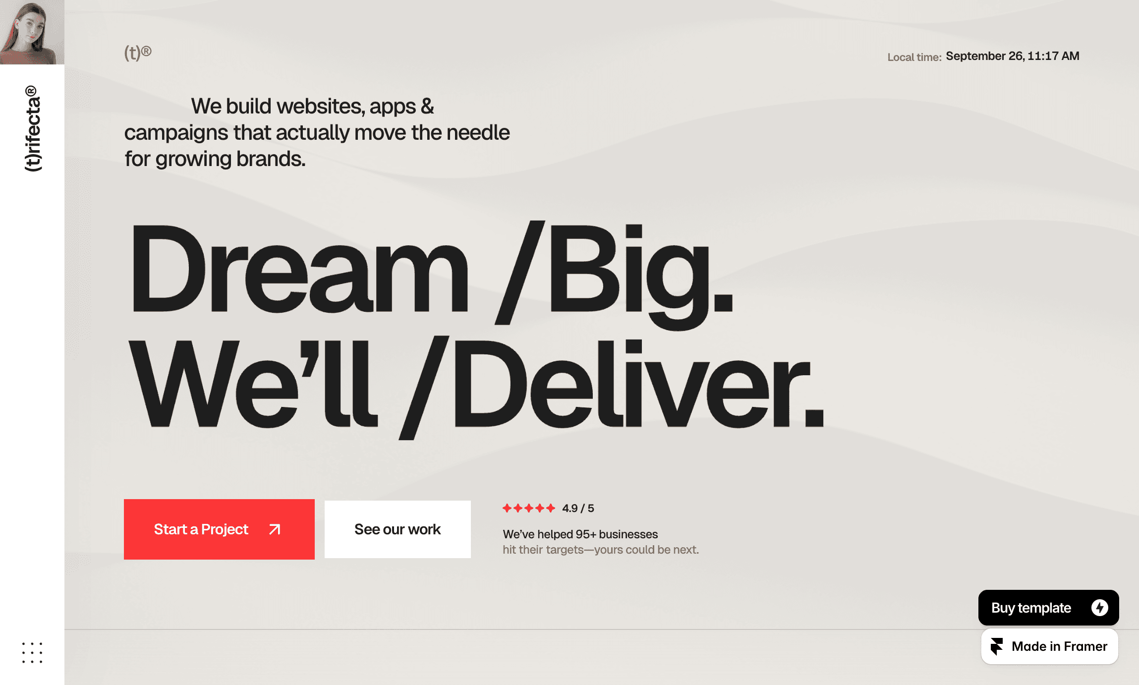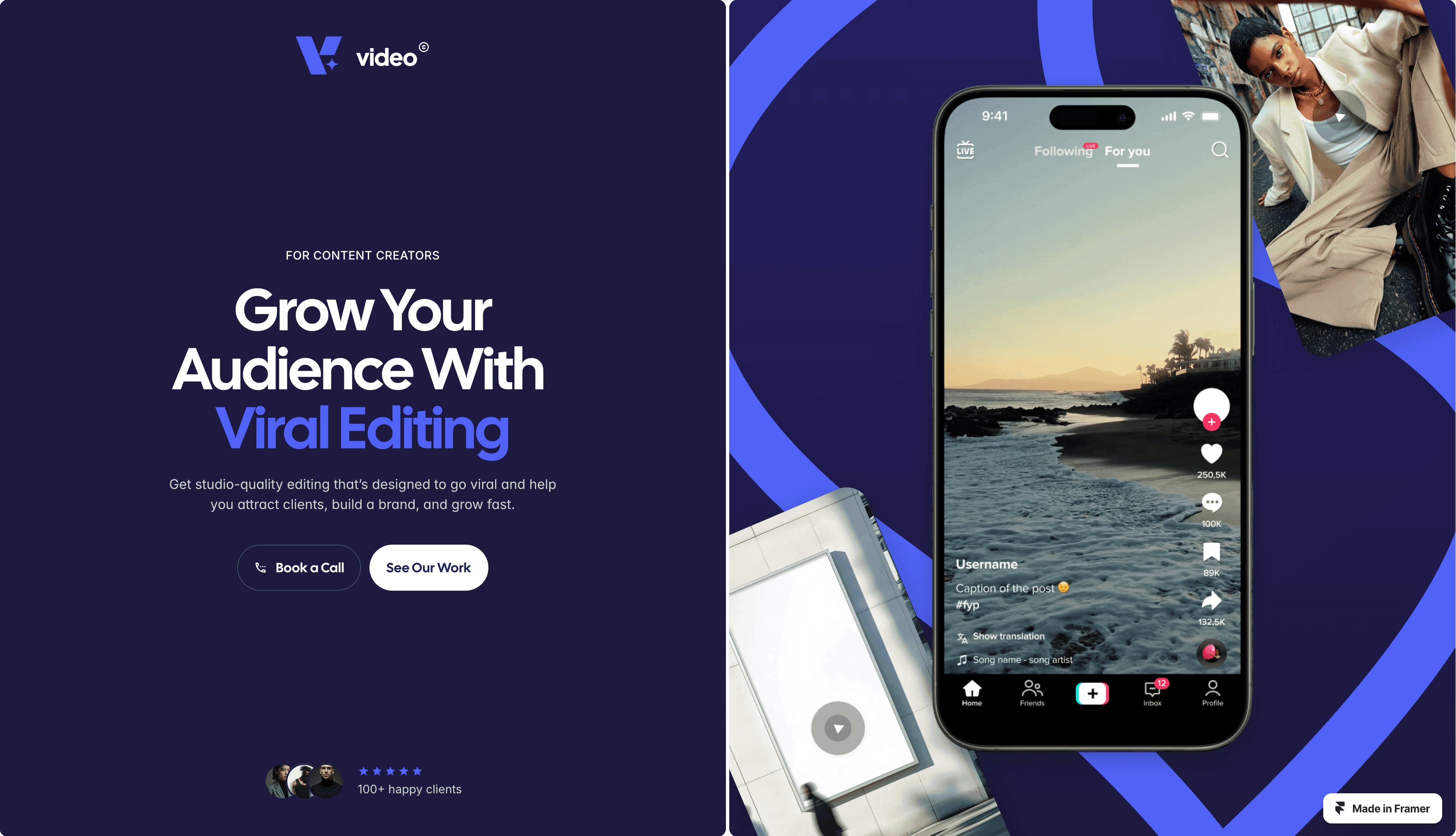 顾名思义,这款以视频为中心的营销网站非常适合展示社交媒体活动、短视频和其他动画内容。它将视频置于用户体验的前沿,并包含清晰的预订功能以推动业务增长。