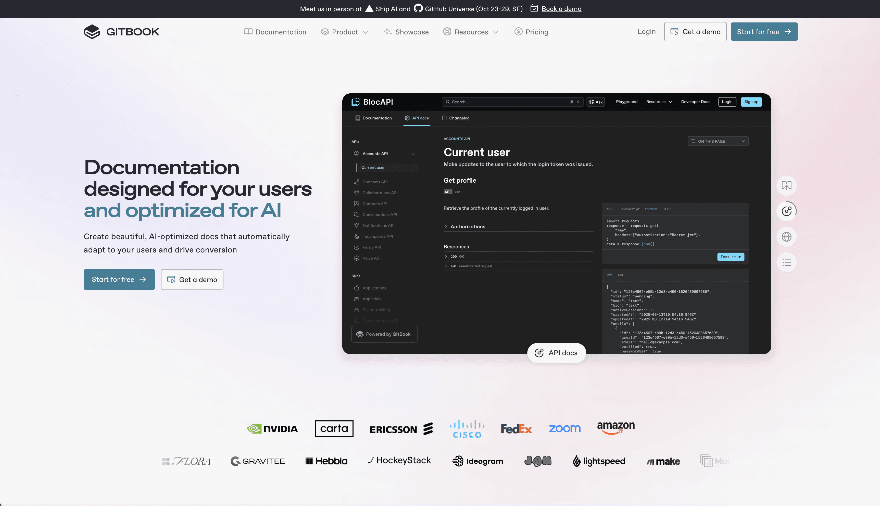 作为可信赖 SaaS 品牌的一个示例,Gitbook 网站展示了卓越的信息架构以及对信任信号的有效运用。它将高质量的文案、图形和 CTA 混合在易于消化的块中,使其技术信息具有可读性。
