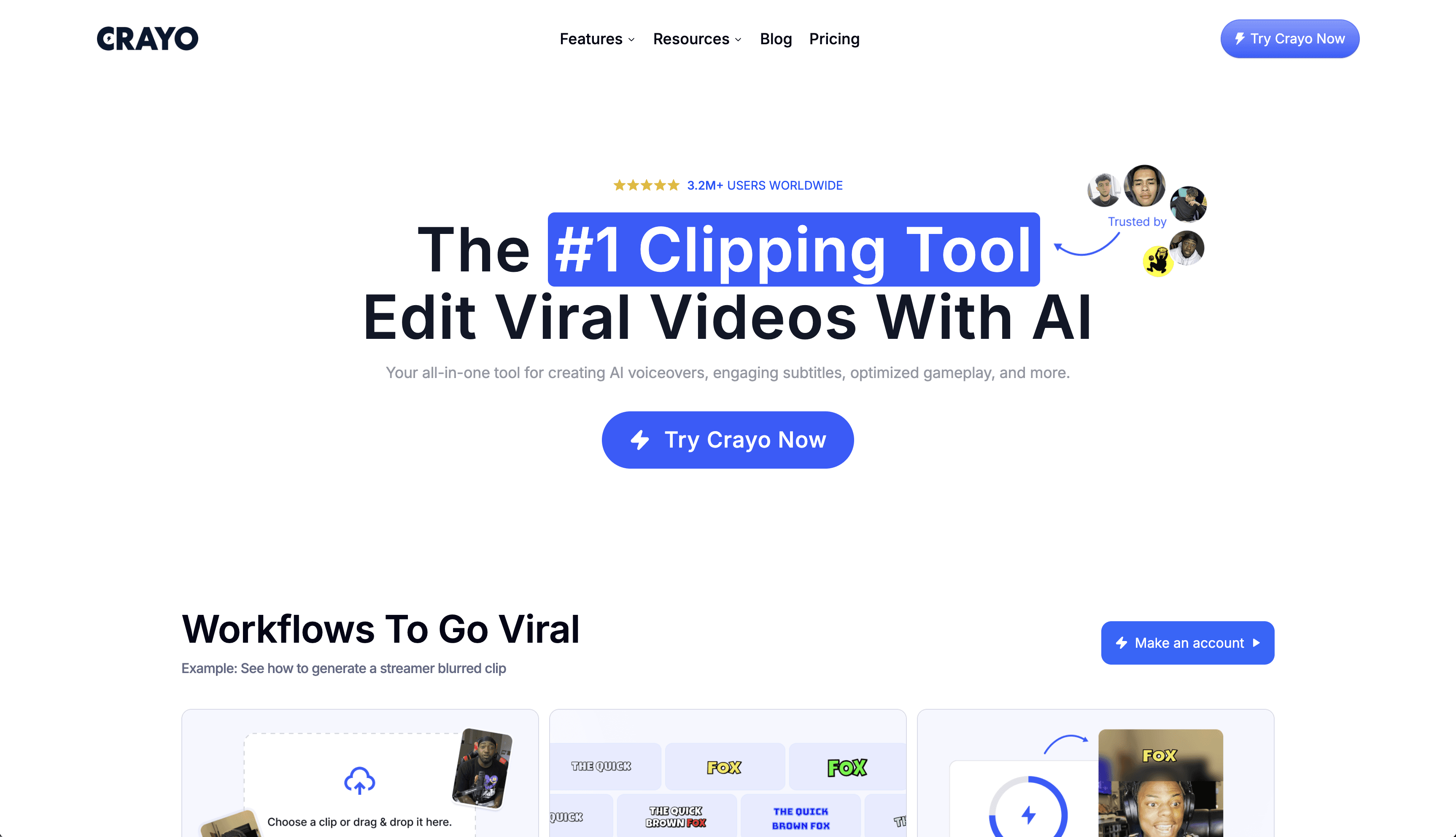 任何人只要浏览 Crayo AI 的主页,就能看到其价值主张。这是另一个具有强大品牌影响力的 AI SaaS 网站,值得数字营销人员效仿。Crayo AI 尤其利用产品营销案例研究的优势,展示了如何用简单、直接的语言沟通技术产品的价值。\