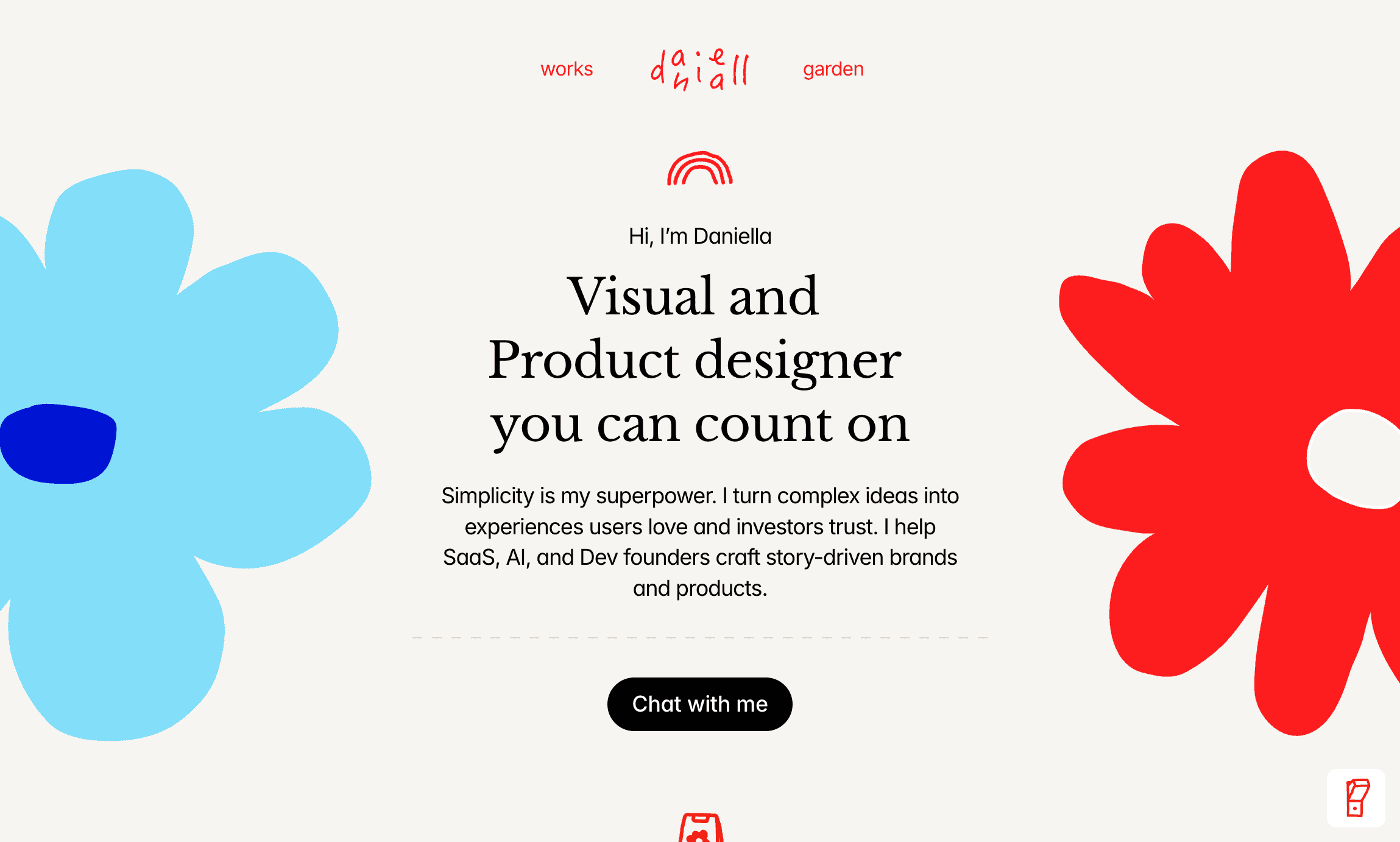 这份视觉和产品设计师 Daniella Marynova 的个人作品集,清晰地定义了她在 SaaS、金融科技、人工智能和 Web3 行业中的品牌、产品和营销设计专业方向。设计立即确立了她的专业定位和专长。