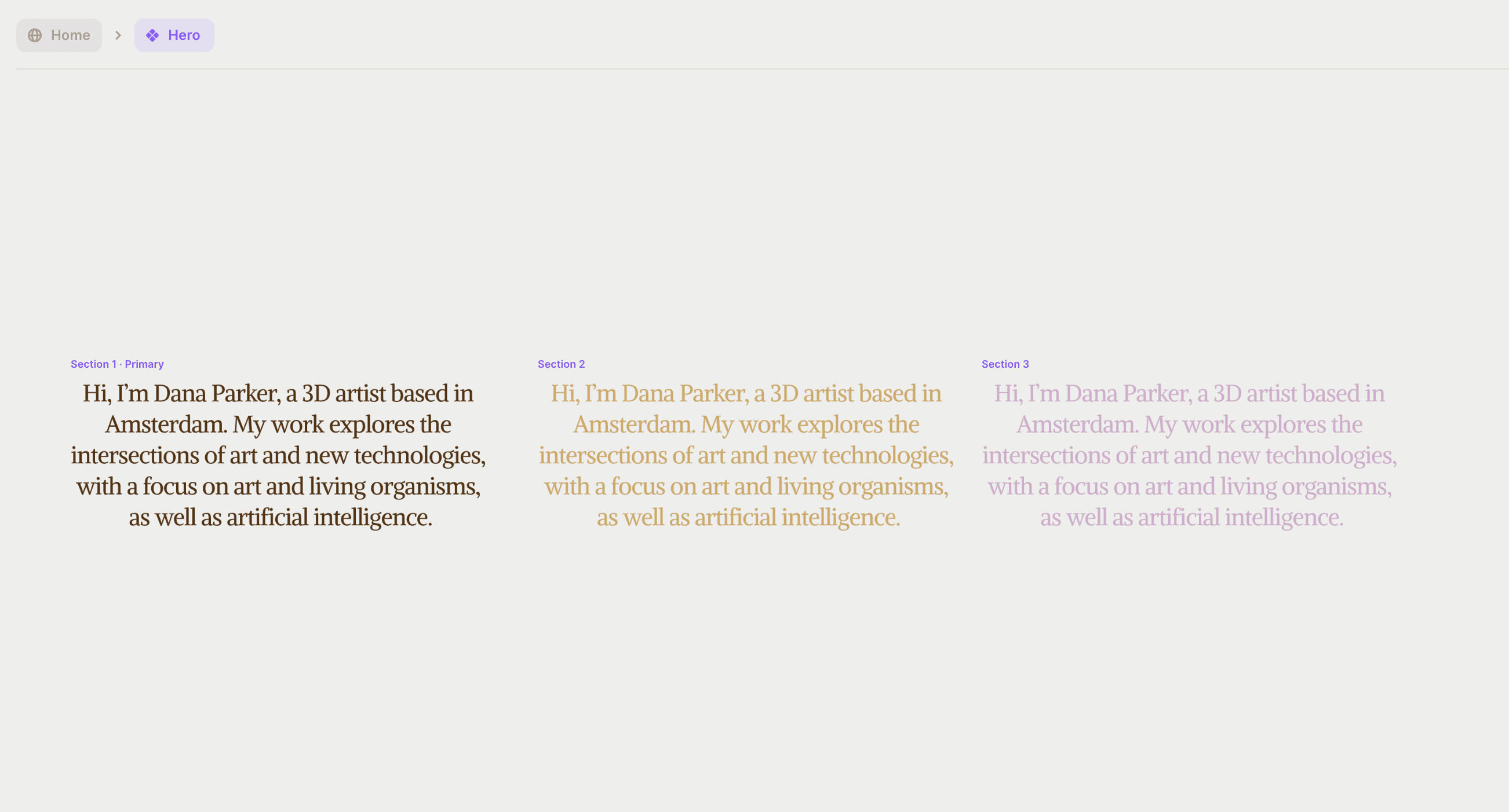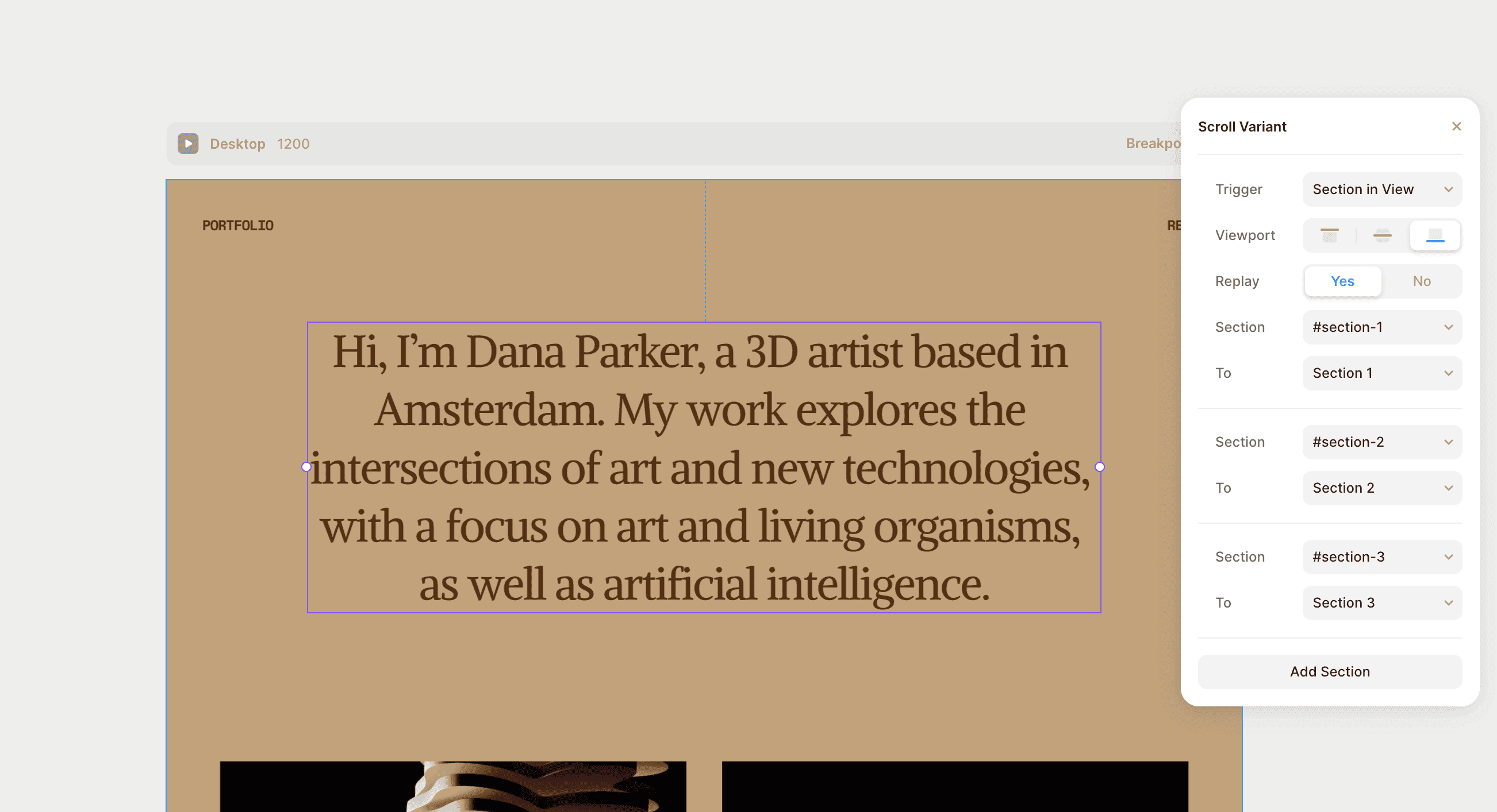 创建滚动效果的第一步是为您的英雄内容和背景创建变体。这可以通过设置与您的图像部分相对应的三个变体来完成。