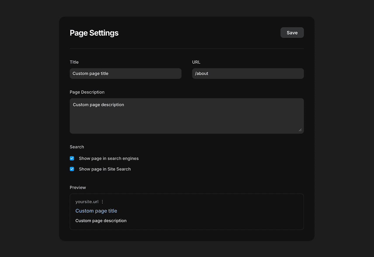 Framer 使网站架构变得简单。它会自动创建和更新您的 sitemap.xml 文件,帮助搜索引擎有效地抓取和索引您的内容。Framer 的 URL 管理工具使构建逻辑层次结构和添加面包屑导航变得容易。您可以在站点设置中自定义 URL,以获得更好的 SEO。同时,内置的 重定向系统 可在网站变更期间保护您的搜索排名。