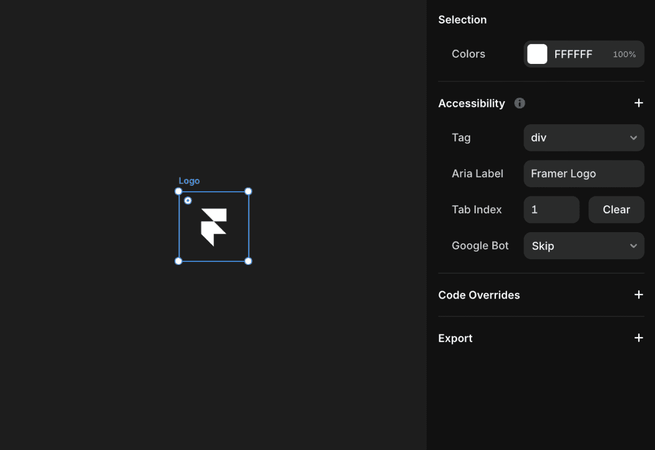 提示:在 Framer 的可访问性面板中审查每个元素,并根据需要添加 ARIA 标签、调整 Tab 键顺序和微调语义标签。对于结构化内容,请使用适当的框架标签,如 Article、Header、Footer 和 Nav。