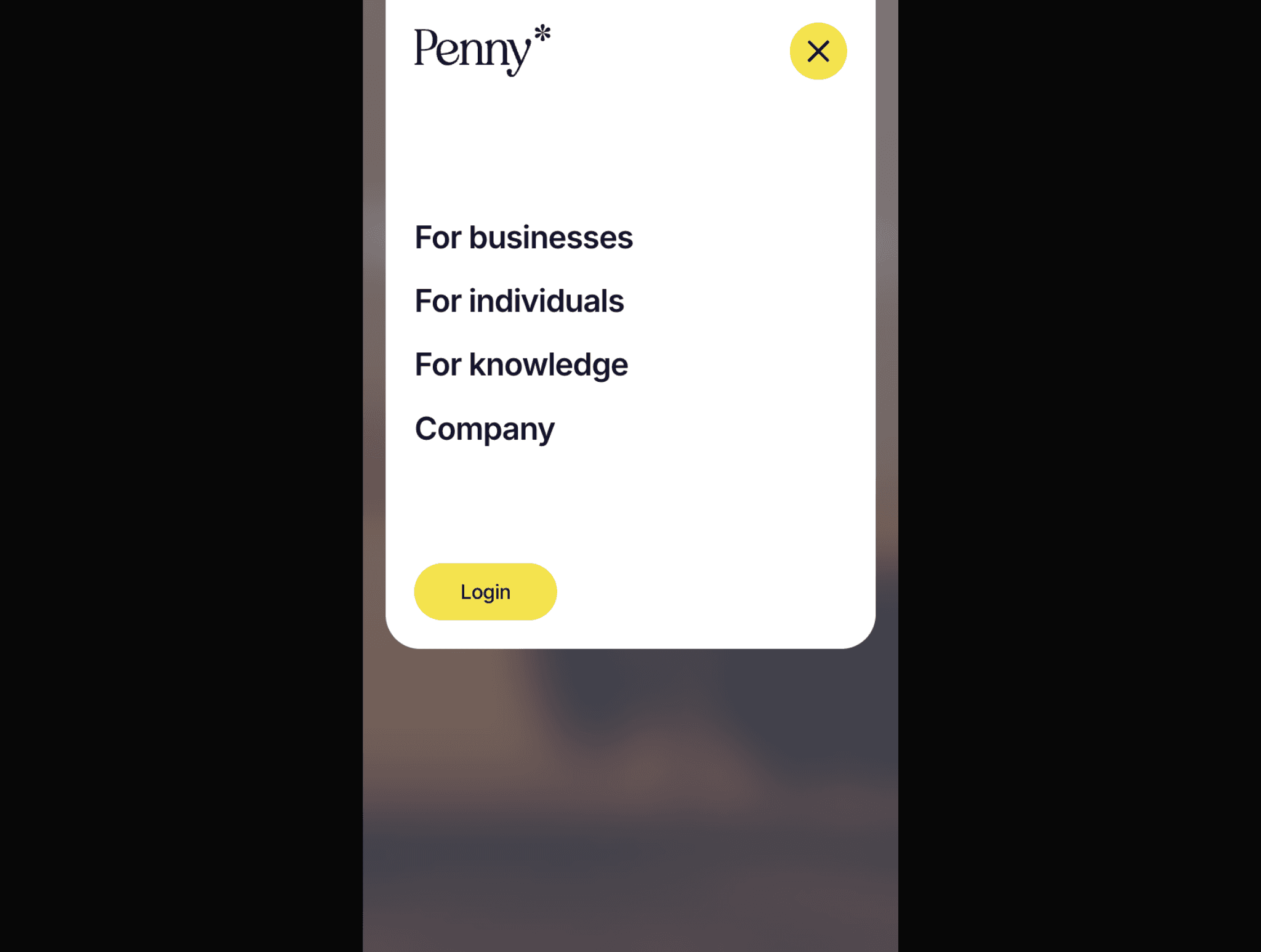 对于移动菜单来说,越简单越好。Penny这家金融科技公司在这方面具有优势:它的网站只有四个页面和一个 CTA。Penny 通过增加字体大小、添加留白以及将汉堡图标动画化为“X”来让用户了解如何关闭菜单,从而出色地为其移动设备适配了菜单。