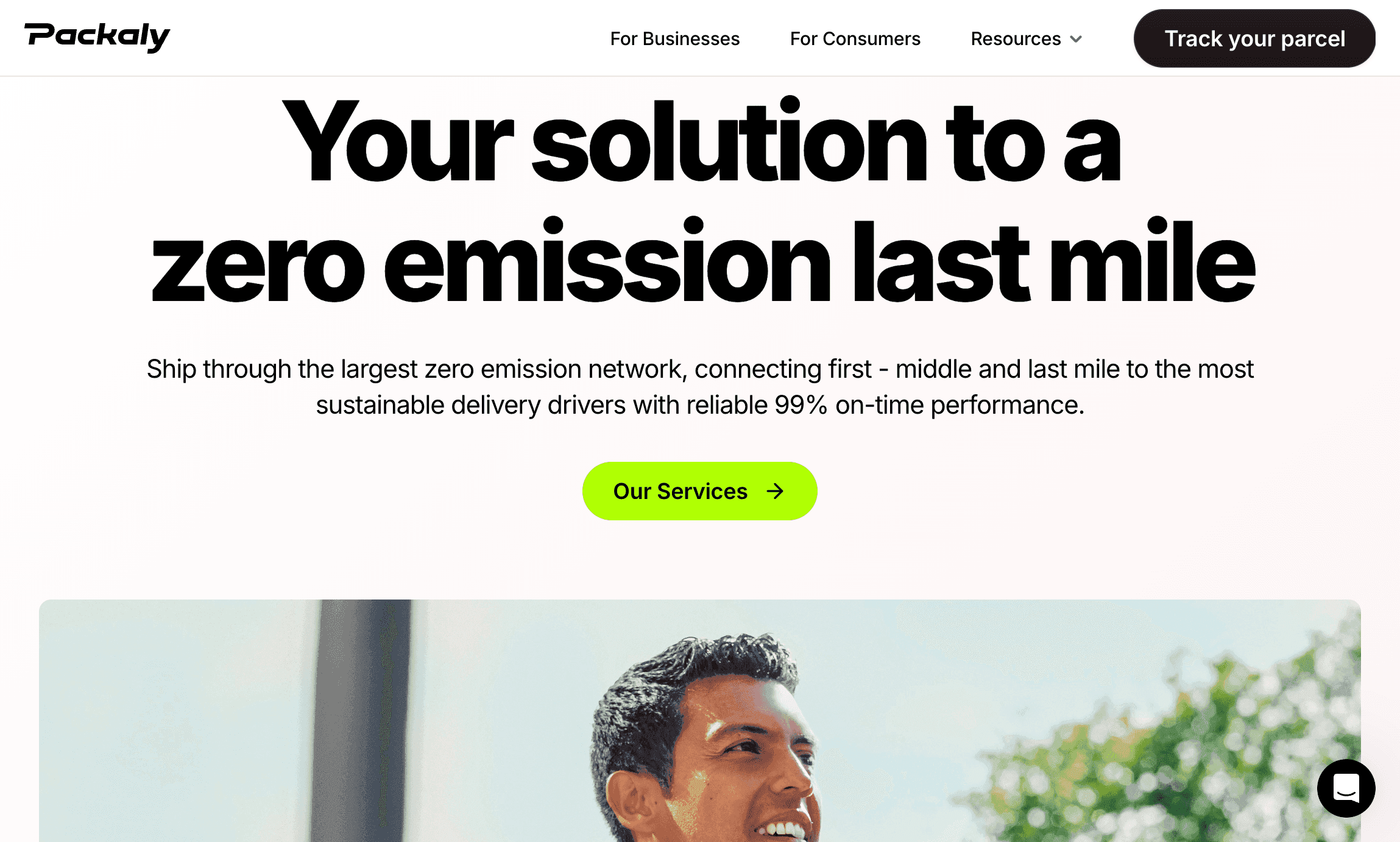 只有三个主要菜单项,一个下拉菜单和一个导航栏行动号召,Packaly是导航极简主义优势的一个很好的例子。用户立即知道该做什么——如果他们想深入了解,他们也知道去哪里。