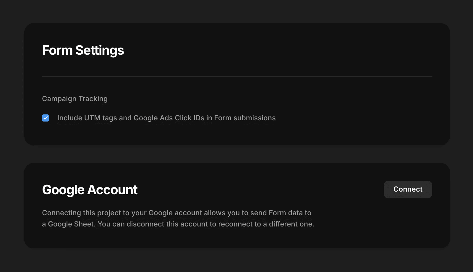 启用此选项后,UTM 参数和 GCLID 值会自动添加到你的表单提交数据中。