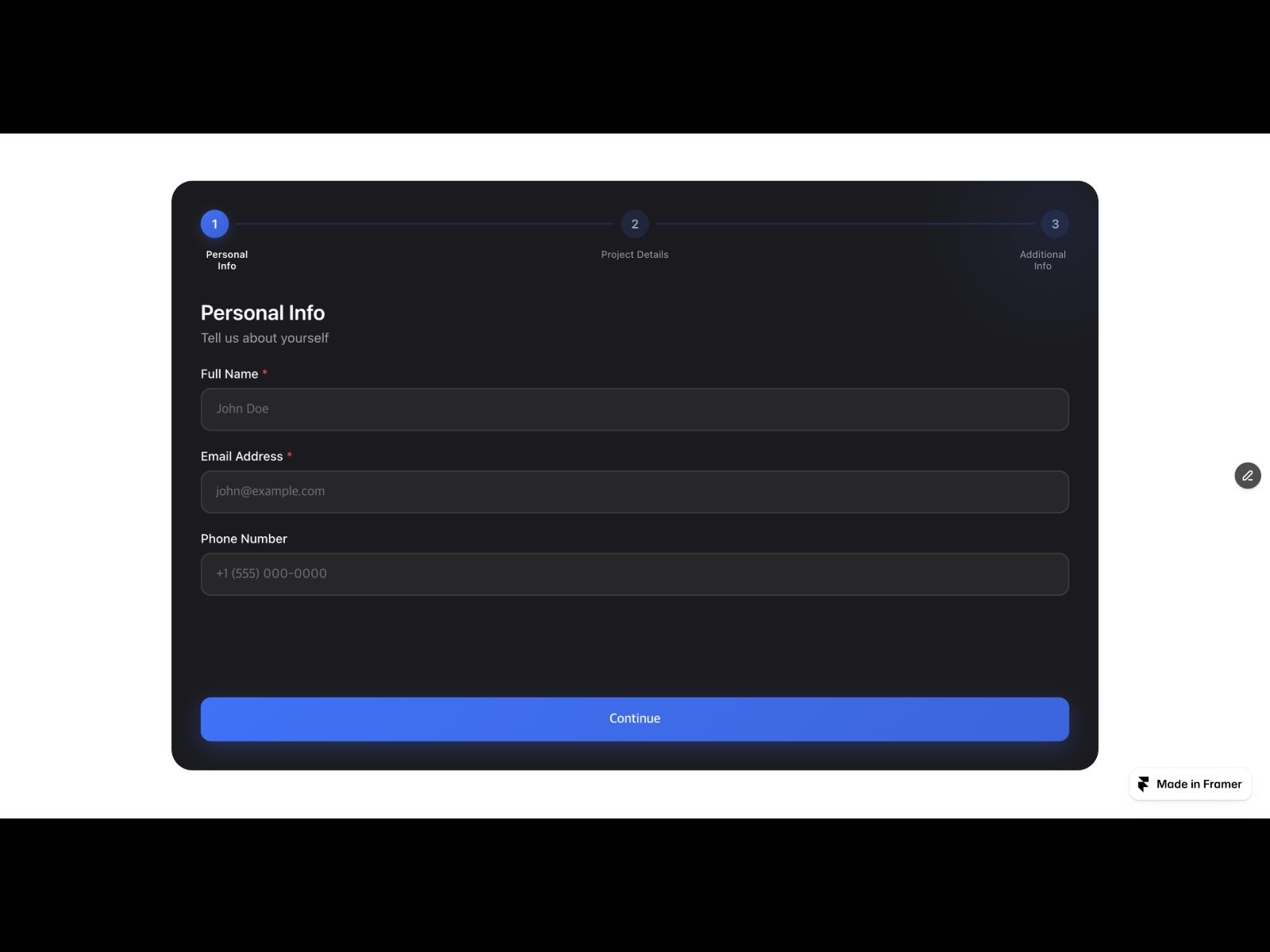 将表单拆分为多个步骤以提升体验:一次只显示一个部分,可按你希望的方式组织。
