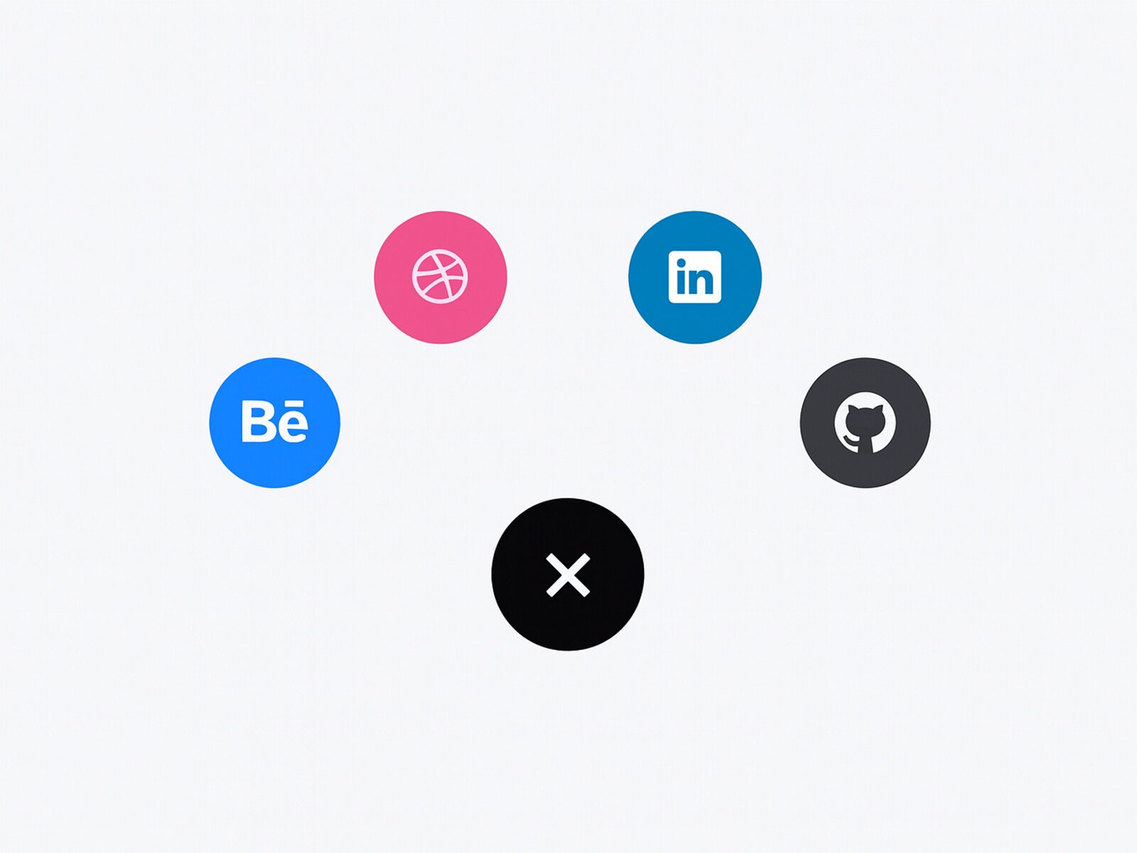 时尚交互按钮:悬停时顺滑揭示社交链接。