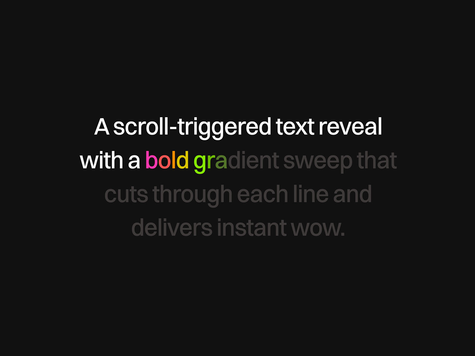 Scroll to Type:随滚动揭示文本的组件;可自定义文本区块样式,如高亮、强调、发光或淡入淡出。