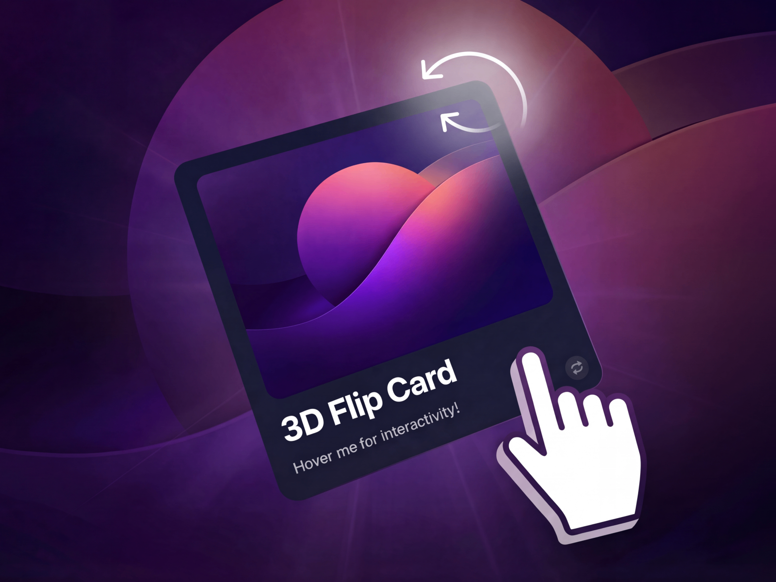 未来感 3D 翻转卡片:带辉光效果,支持悬停/点击翻转、可自定义尺寸,并内置 CTA 按钮,适合高冲击交互。