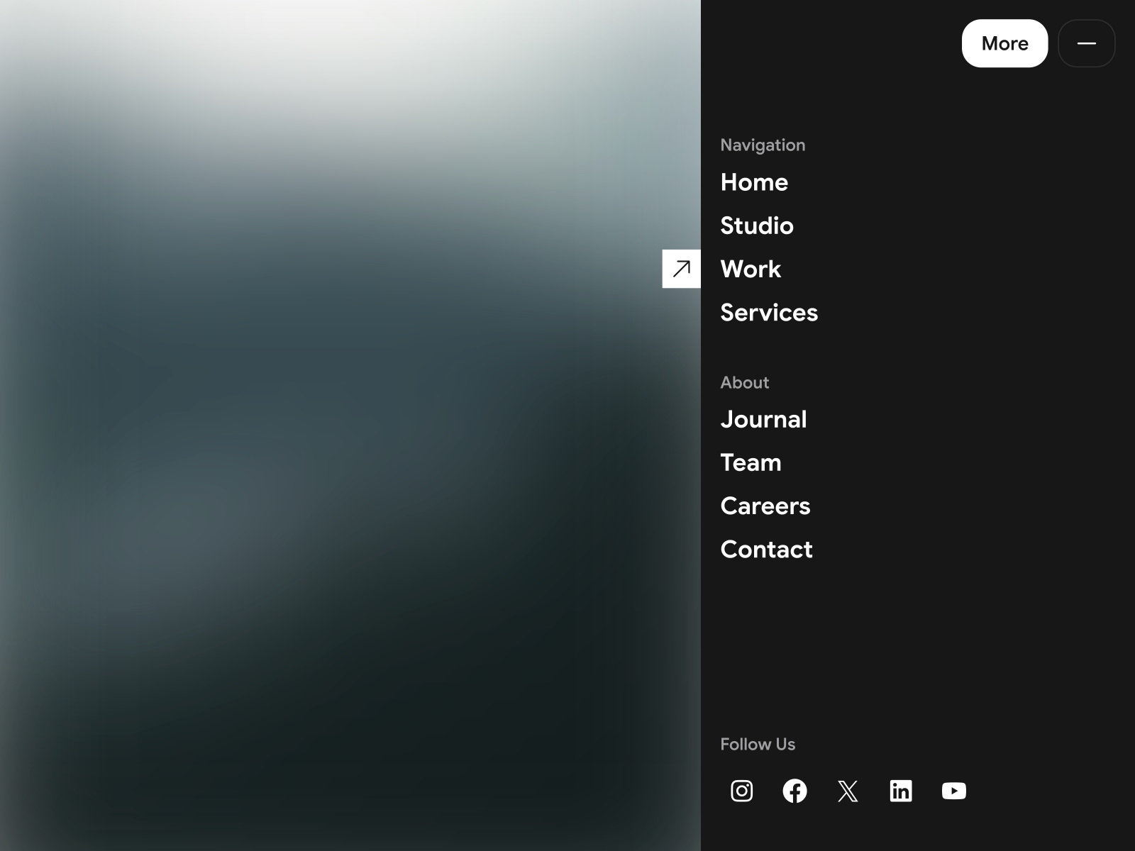 悬停展开的动态按钮:显示 Apple Music、Spotify、YouTube 与商店链接;顺滑动画,适合推广专辑。