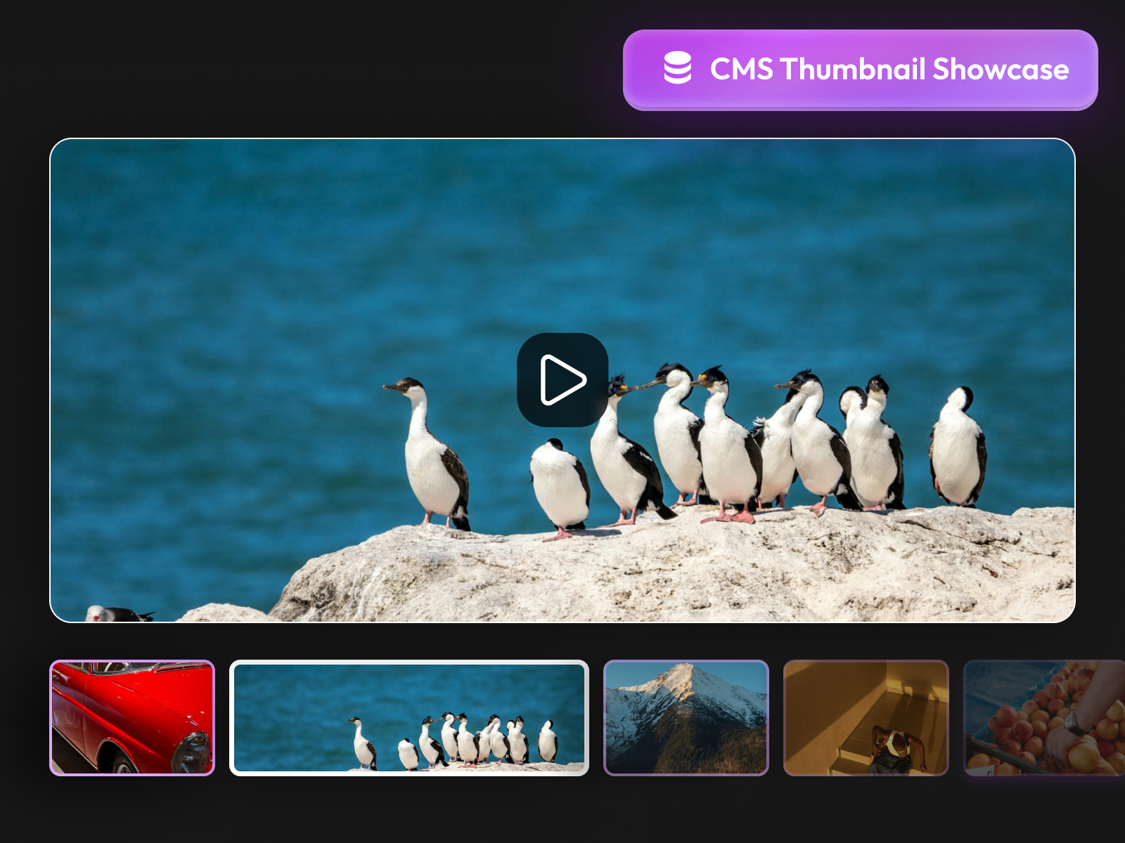 面向 Framer 的全功能视频滑块:支持文件上传、直链 URL 或 CMS 集成的多视频源。