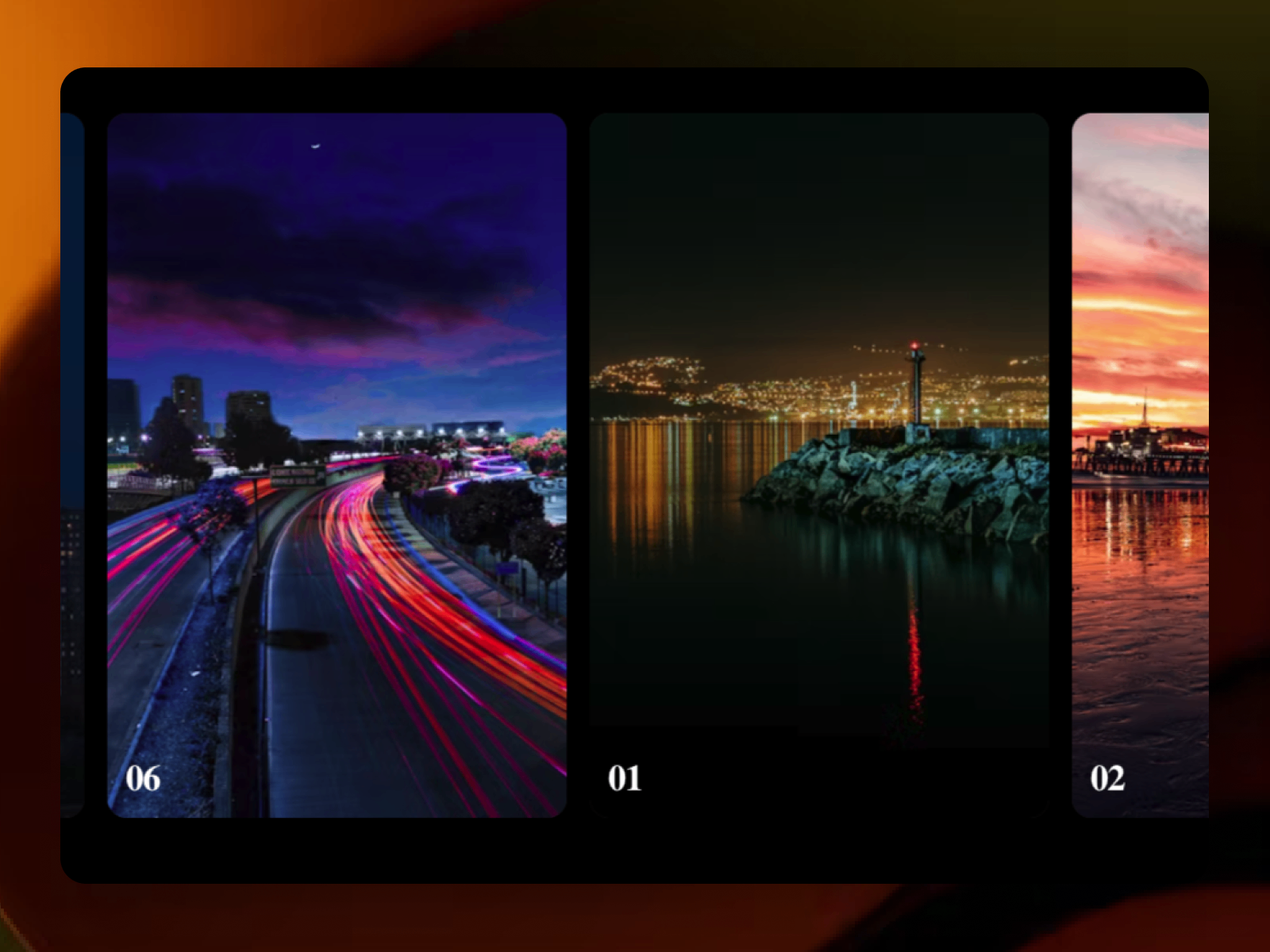 交互式旋转卡片轮播:顺滑 3D 转场。