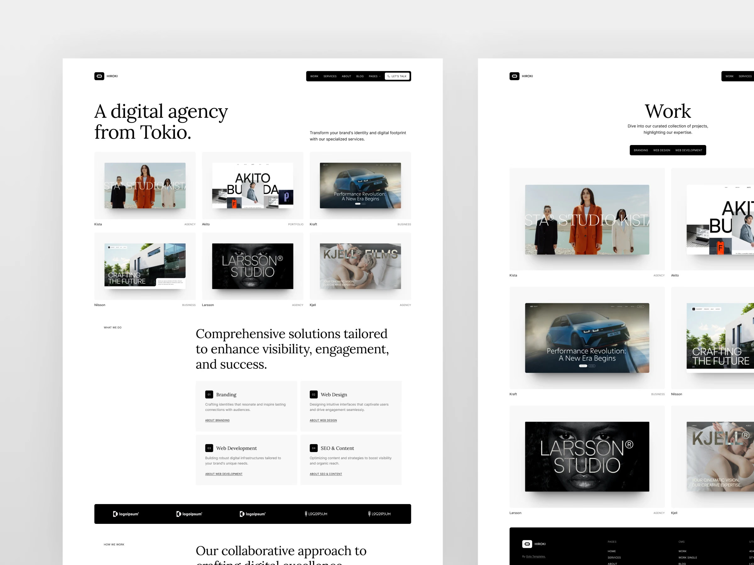 Larsson 是一款简约风格的创意机构与作品集网站模板,专为广告公司、创意人士、品牌工作室、设计工作室、自由职业者及个人作品展示打造,兼具实用性与灵活性。