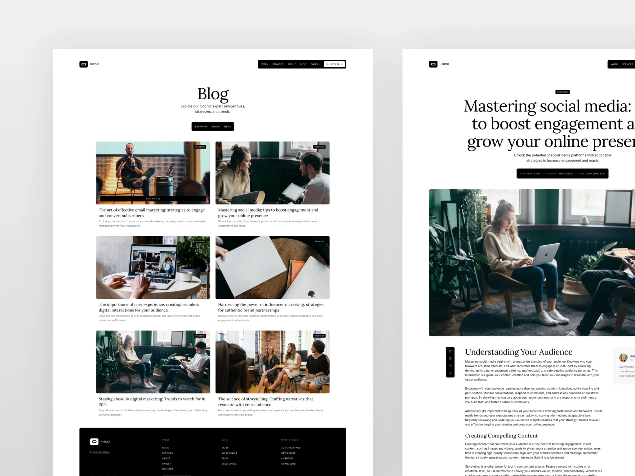 Hiroki 是一款极简主义网站模板,专为代理机构、创意人士、品牌工作室、设计工作室、自由职业者和个人作品集量身定制。